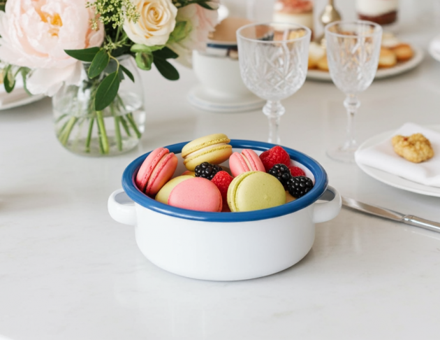 琺瑯材質耐用易清潔,俏皮的跳色設計讓吃飯充滿樂趣與色彩,